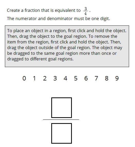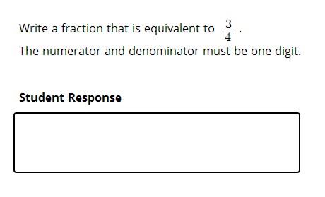 TE items provide test developers with at least one more option when determining the most effective method to assess a construct. As an example, provided below are three different ways to assess a student’s understanding of equivalent fractions. Which item would you choose? Why? Leave a comment with your recommendation.